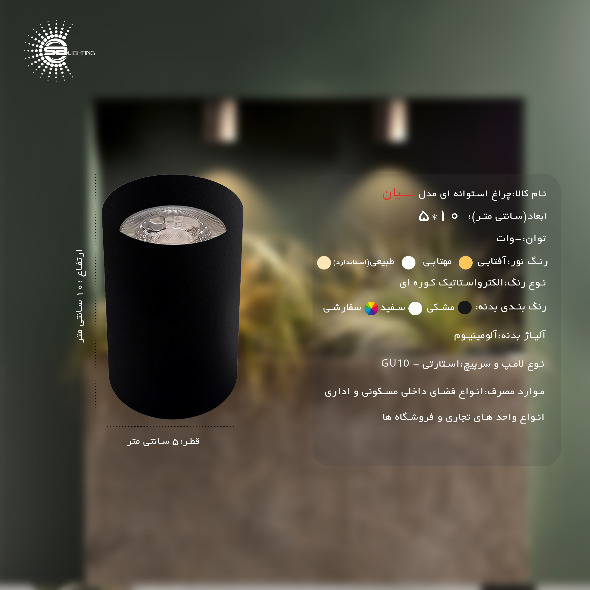دامنه ولتاژ کاری:220-240ولت فرکانس:50 هرتز رنگ بدنه :سفید ،مشکی،سفارشی ارتفاع: ۶،۱۰،۲۰،۳۰ سانت قطر: 5 سانت لامپ:GU10،استارتی